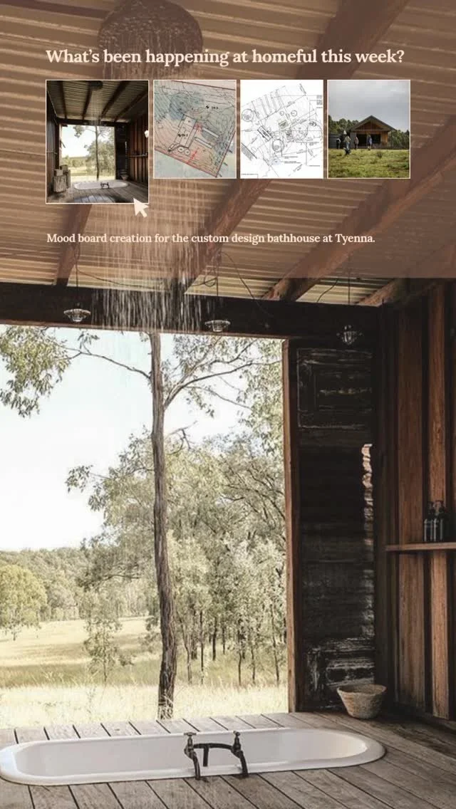 It celebrates the relaxed, wholesome Tassie lifestyle all under one simple roof. It provides all the basics for comfort: outdoor kitchen and wood fire, indoor space to cosy up in when the cool weather comes in, two cosy bedrooms, semi-outdoor bathroom facilities and a big deck for living…not to mention the essential bath on the deck!
